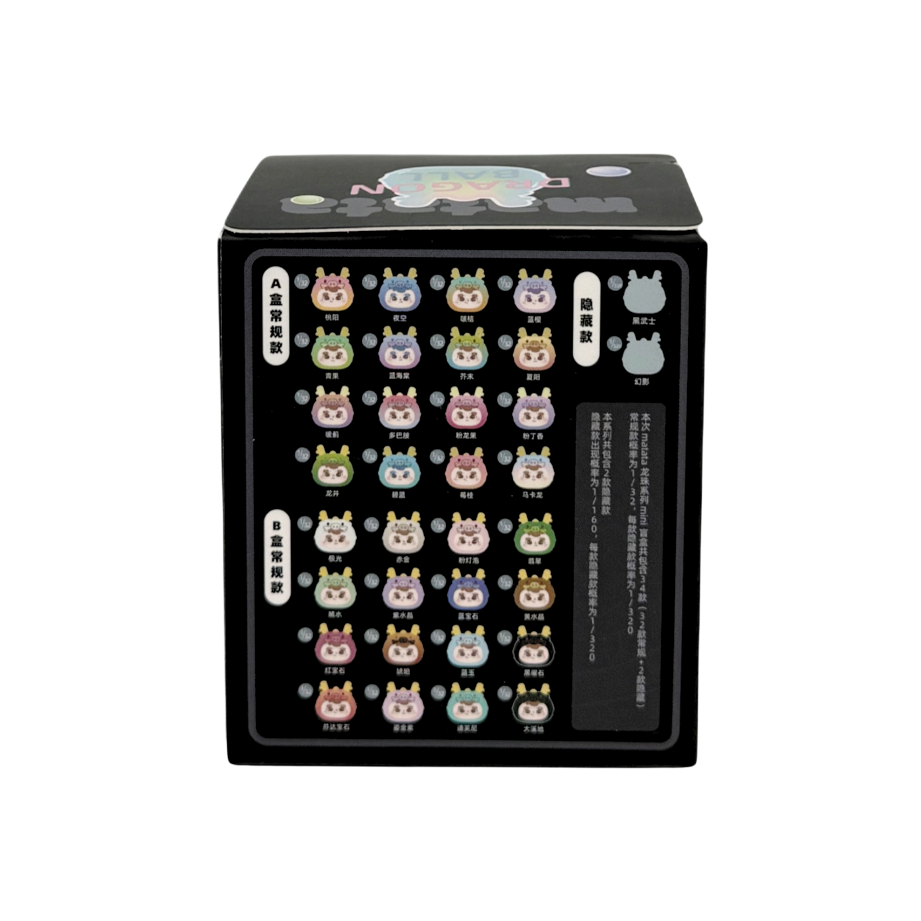 内容: 1つのブラインドボックスにつき、いずれか1種がランダムで封入されています。シークレットは全2種、出現確率は約1/320です。